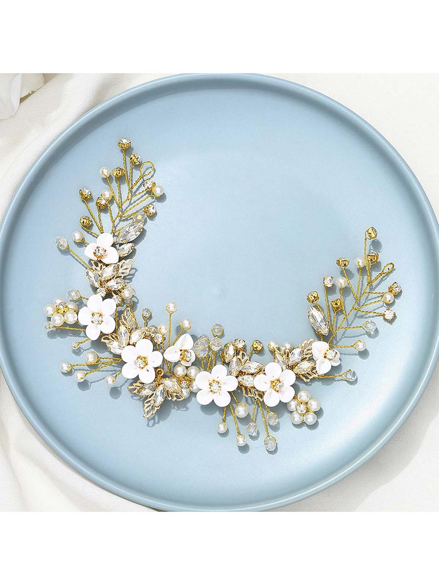 💖1. Elegant vine design: The hair accessory adopts exquisite vine shape. decorated with white flowers. silver leaves. crystals and pearls. showing elegance and romantic style.